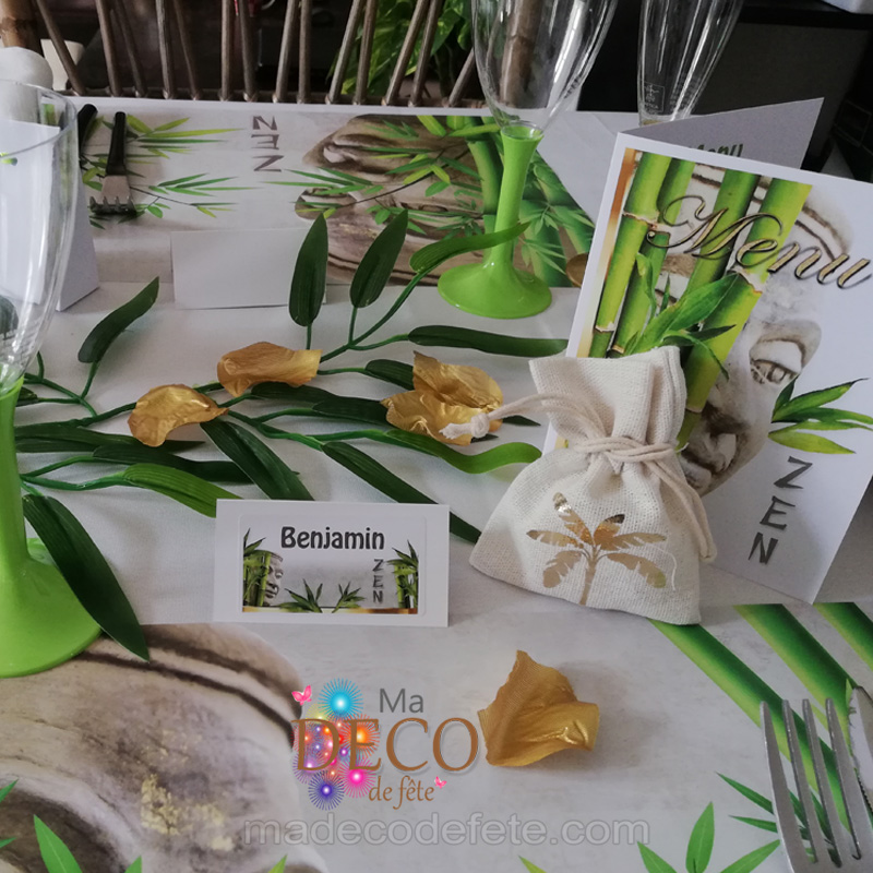 Un simple menu décoratif, un marque place, un set de table à petit prix, un menu rond dans lequel vous pourrez y glisser une bougie led afin de créer une ambiance feutrée, un porte serviette personnalisé avec les prénoms des invités….sur Madecodefete la boutique évènementielle à thème trouvez les articles de fête pas chères et faîtes des économies !!!